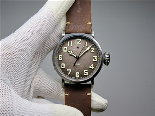 真力时Pilot Type 20 TON -UP 御行特别版腕表-复古大飞表壳采用精钢做旧,并经过缎面拉丝处理。间变灰色表盘上装点超大白色荧光数字时